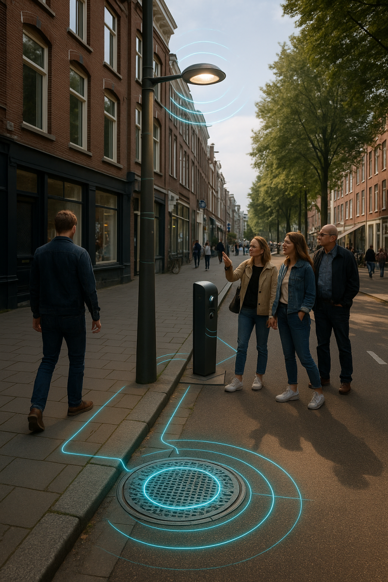 Precies: wat jij beschrijft is de paradox van de “onzichtbare stad”. IoT en AI zijn er al — in verkeerslichten, warmtemeters, OV-chip, slimme laadpalen — maar omdat ze letterlijk in kabels, kasten en software zitten, lijkt de stad fysiek nauwelijks te veranderen. Daardoor onderschatten bestuurders hoe diep die laag de stad al hertekent.