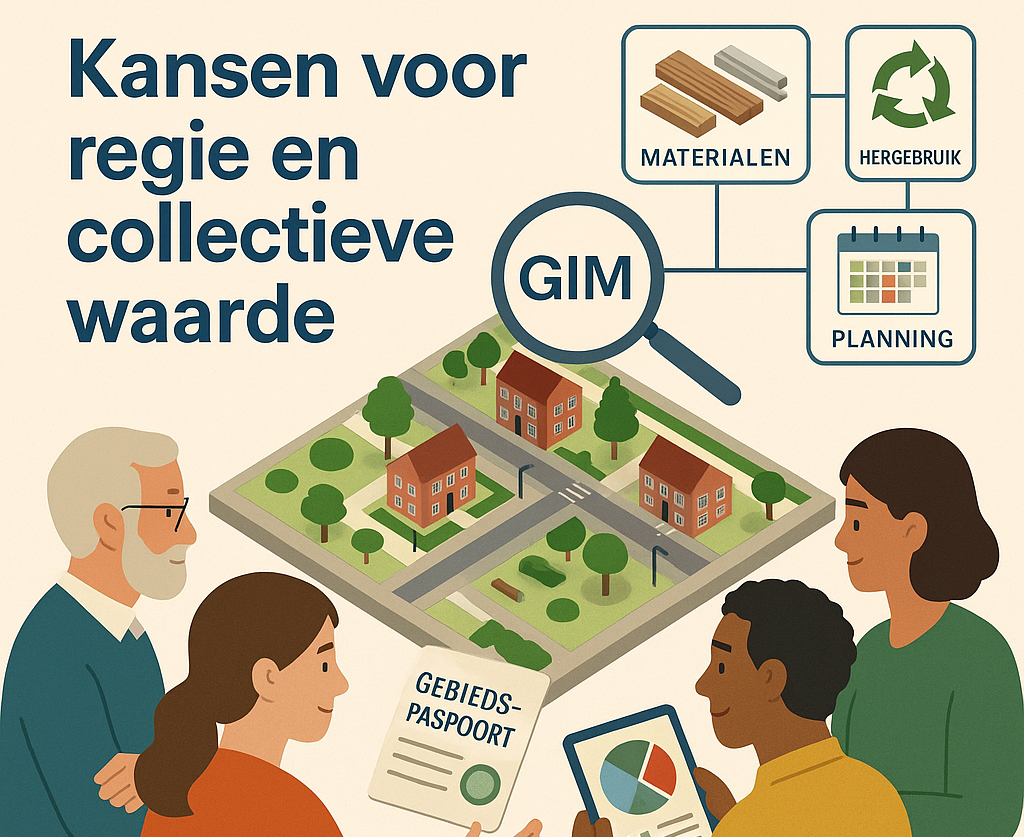 Gebiedsontwikkeling is vaak lineair ingericht: eerst sloop, dan bouwrijp maken, daarna nieuwbouw en daarna inrichten van de openbare ruimte. Maar een circulair proces vraagt om een andere aanpak. Wanneer je weet welke materialen en elementen er vrijkomen bij de sloop, kun je die gebruiken voor hergebruik in de bouw- en inrichtingsfase. AIM (of GIM) maakt dat mogelijk: door tijd, ruimte en materiaalstromen slim aan elkaar te koppelen.