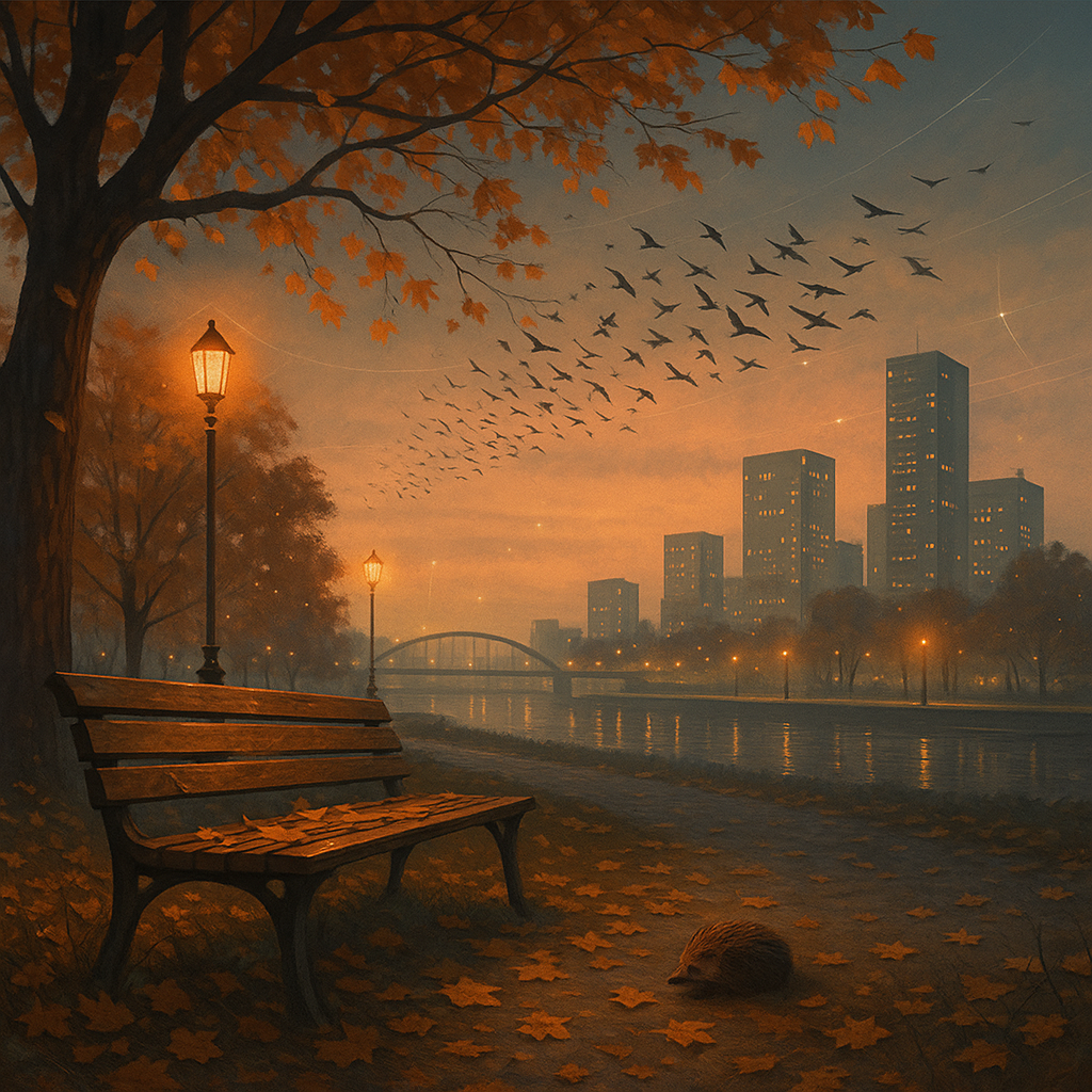 Mens, dier en stad volgen in de herfst hetzelfde patroon van vertraging en voorbereiding. Spreeuwen zwermen boven pleinen, egels zoeken schuilplaats, mensen keren naar binnen. Kunnen we steden zo ontwerpen dat dit ritme voelbaar blijft? Een stad die niet enkel werkt maar ook rust ... met seizoensgebonden verlichting, tijdelijke rustzones en flexibele beheerstrategieën.