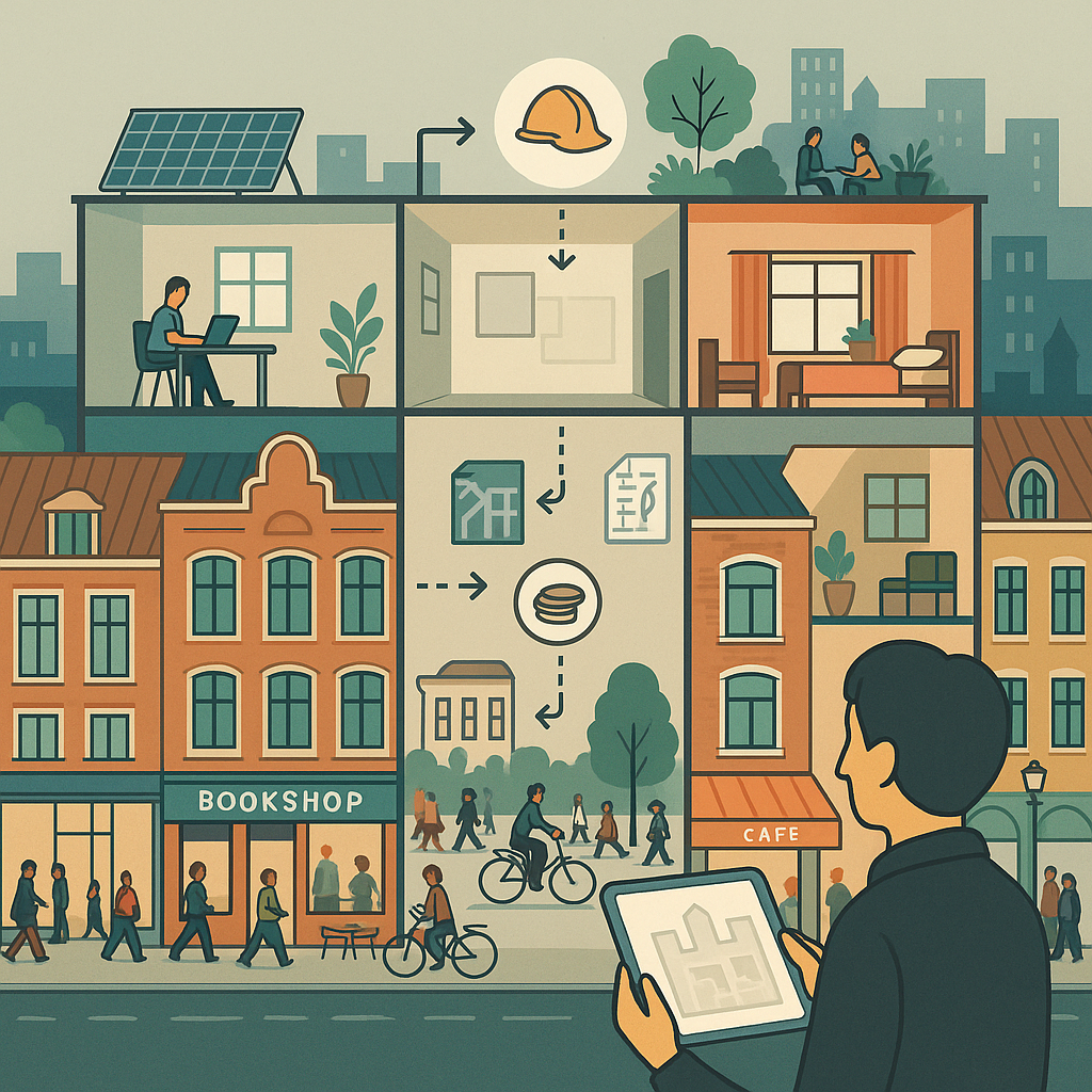 Om de verdiepingen en bovenlagen optimaal te benutten, moeten we anders naar centrumgebieden leren kijken. Niet langer slechts als een verzameling functies op de begane grond, maar als een flexibel, gelaagd systeem waarin ruimte kan transformeren in gebruik en tijd.