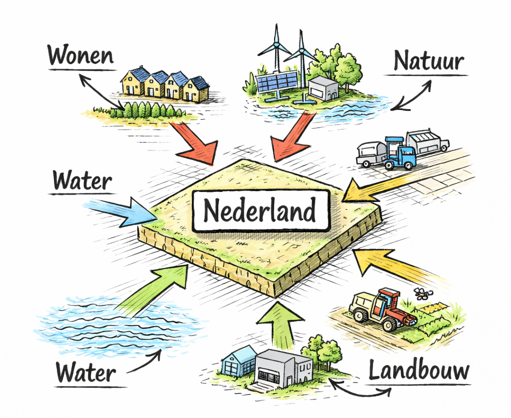 Recent hebben de voorzitters van de Nederlandse Vereniging voor Tuin- en Landschapsarchitectuur (NVTL) en de Beroepsvereniging van Nederlandse Stedenbouwkundigen en Planologen (BNSP) gewezen op het feit dat alleen groei geen optie meer is in ons huidige tijdsgewricht. De beschikbare ruimte in Nederland is simpelweg te beperkt om eindeloos maatschappelijke claims op elkaar te stapelen zonder de gevolgen te overzien (bron: Stadszaken, 2026).